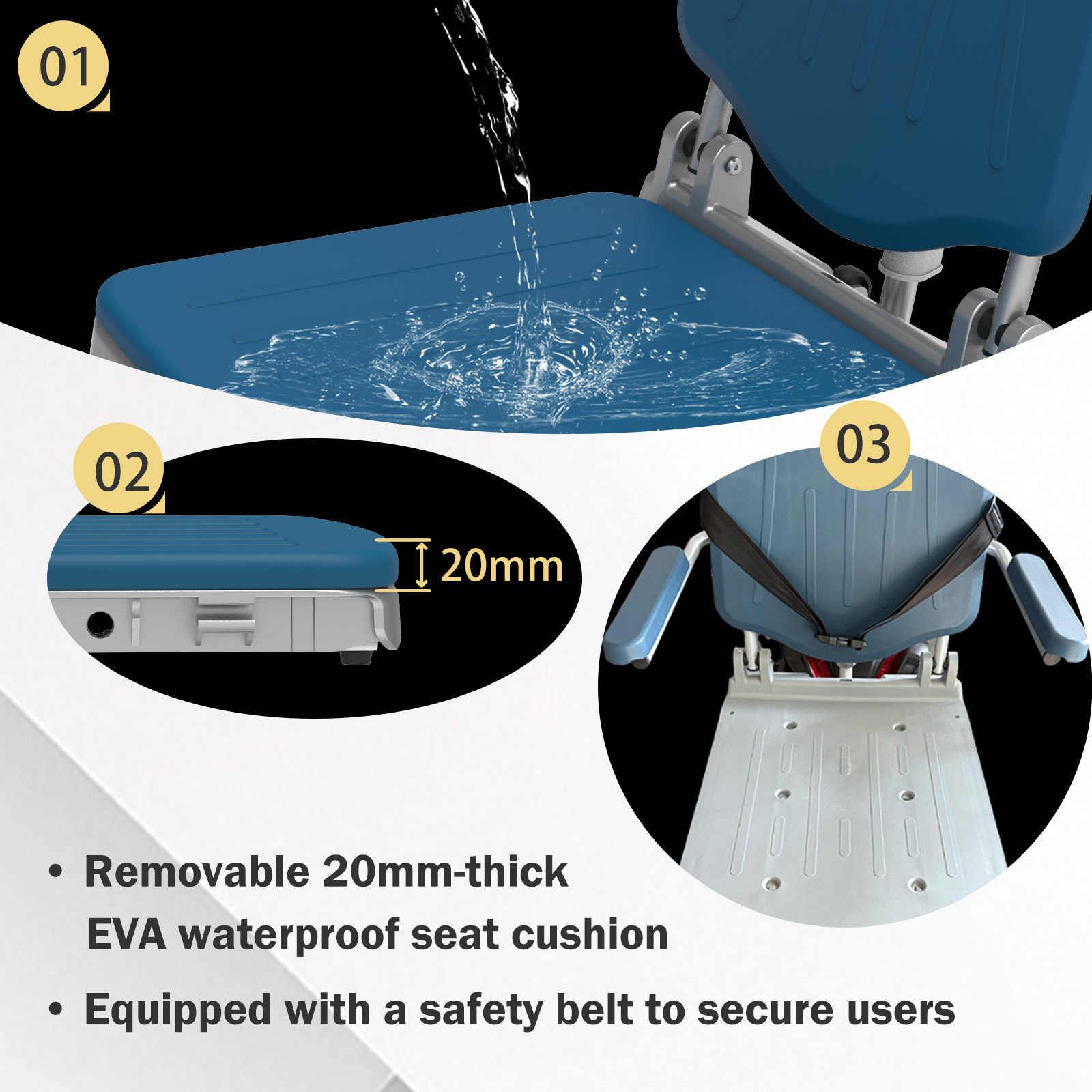 Upang matiyak ang pangmatagalang pagiging maaasahan at mababang gastos sa pagpapanatili, isinasama ng Heins Medical ang isang maginhawang konsepto ng pangangalaga sa HES-L609. Ang corrosion-resistant aluminum frame ay nangangailangan lamang ng basic wiping para sa kalinisan, habang ang 20 mm na hindi tinatablan ng tubig na EVA seat cushion ay naaalis, nahuhugasan, at mabilis na natutuyo.